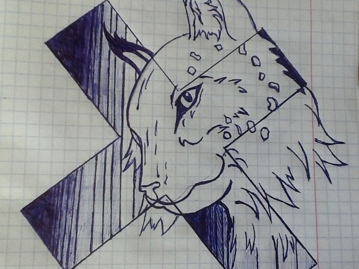![Рисунки чёрной ручкой в тетради в клетку]()