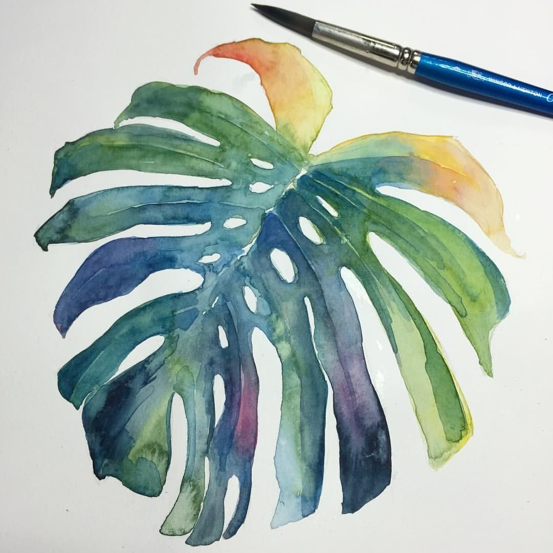 Рисование листка акварелью