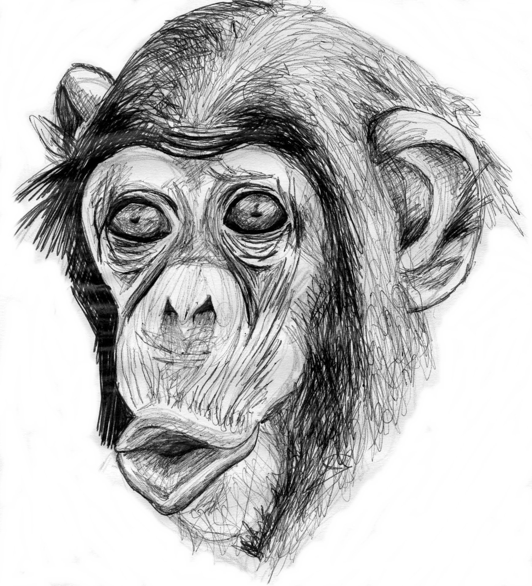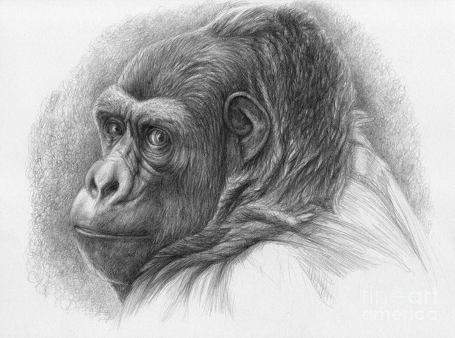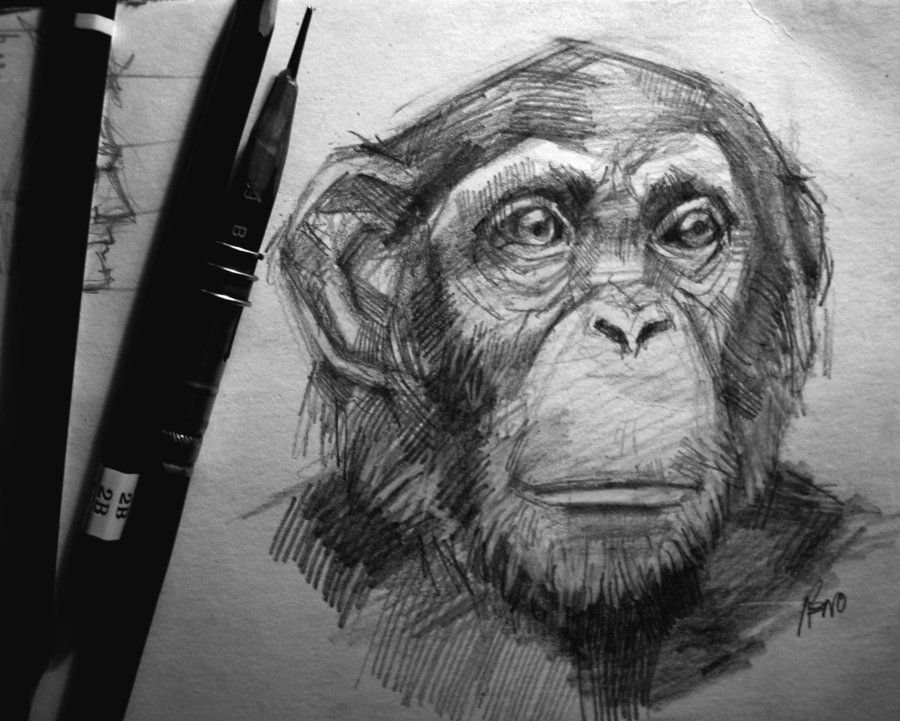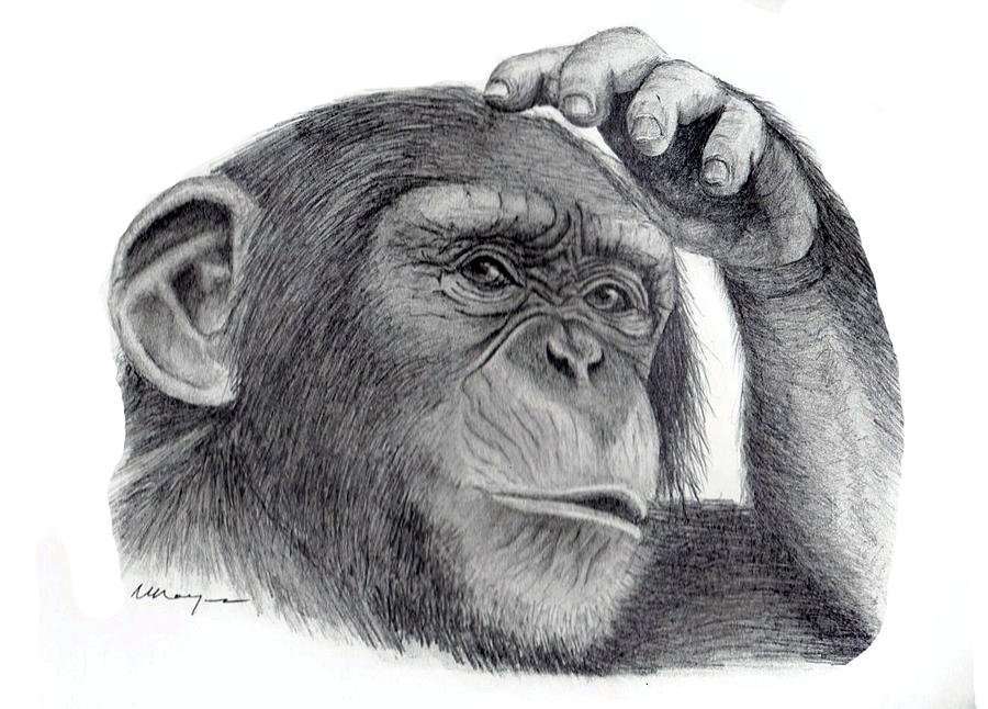 ![Шимпанзе рисунок карандашом]()