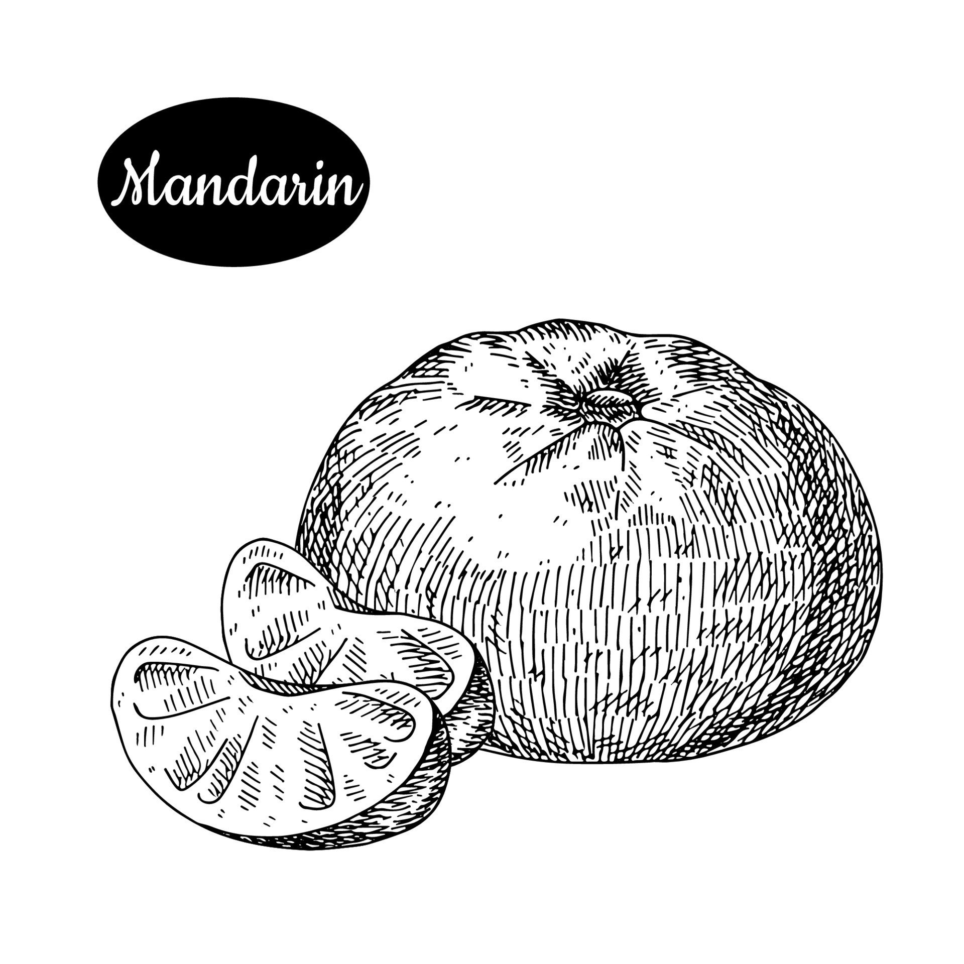 Графика чёрной ручкой мандарины