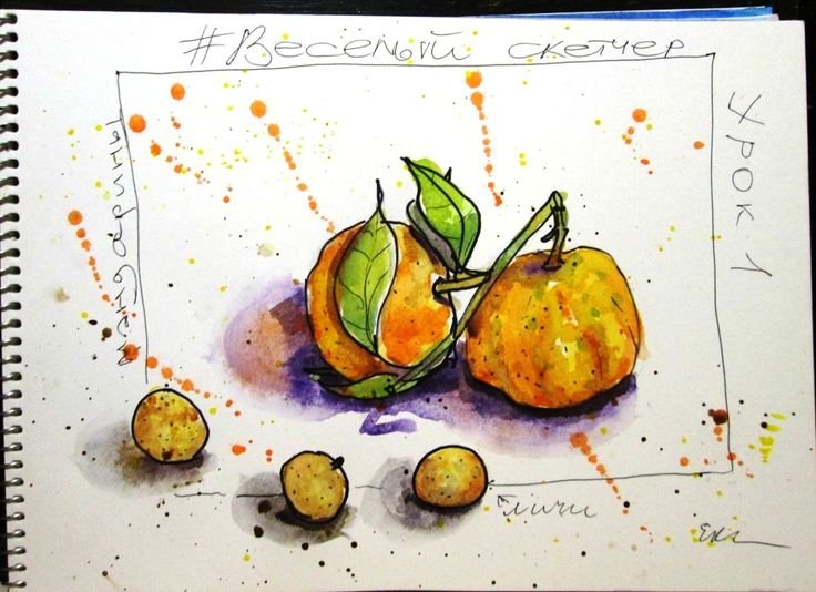 ![Скетчинг мандарины]()