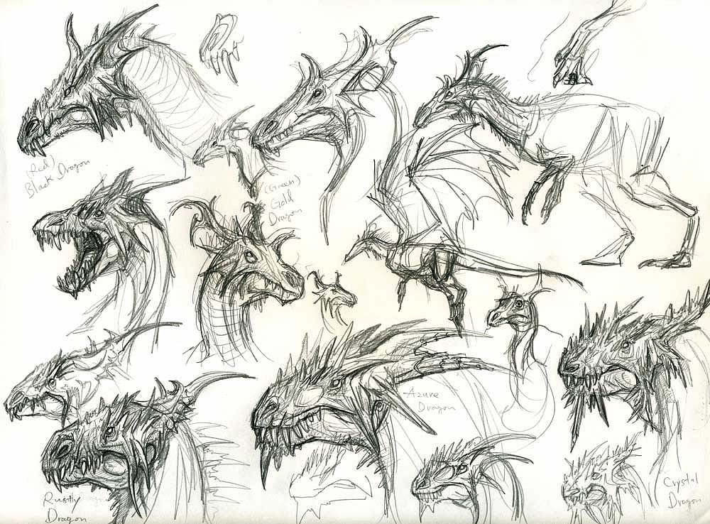 ![Зарисовка головы дракона]()
