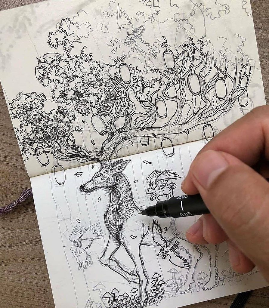 Наброски ручкой в тетради