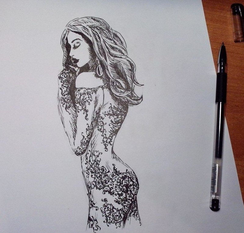 ![Рисунки женского тела ручкой]()