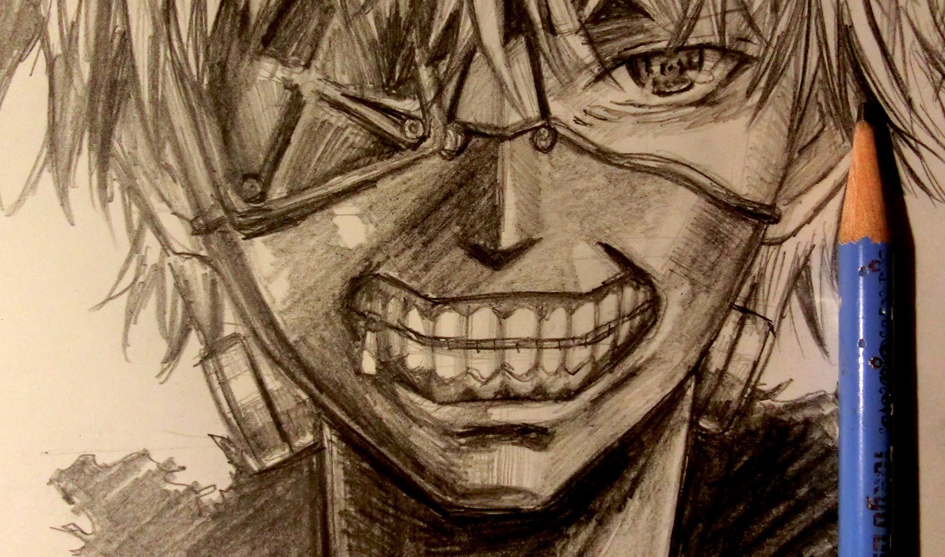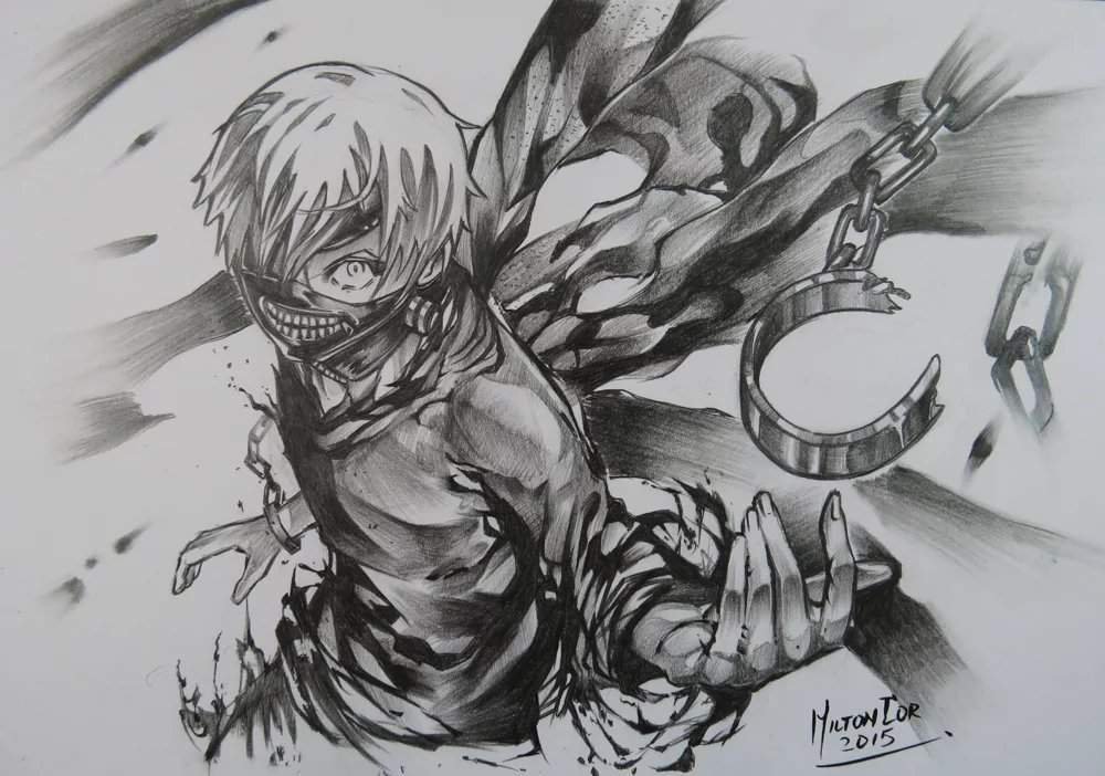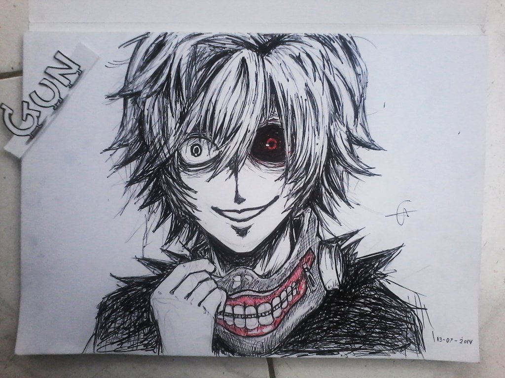 ![Канеки Кен карандашом]()
