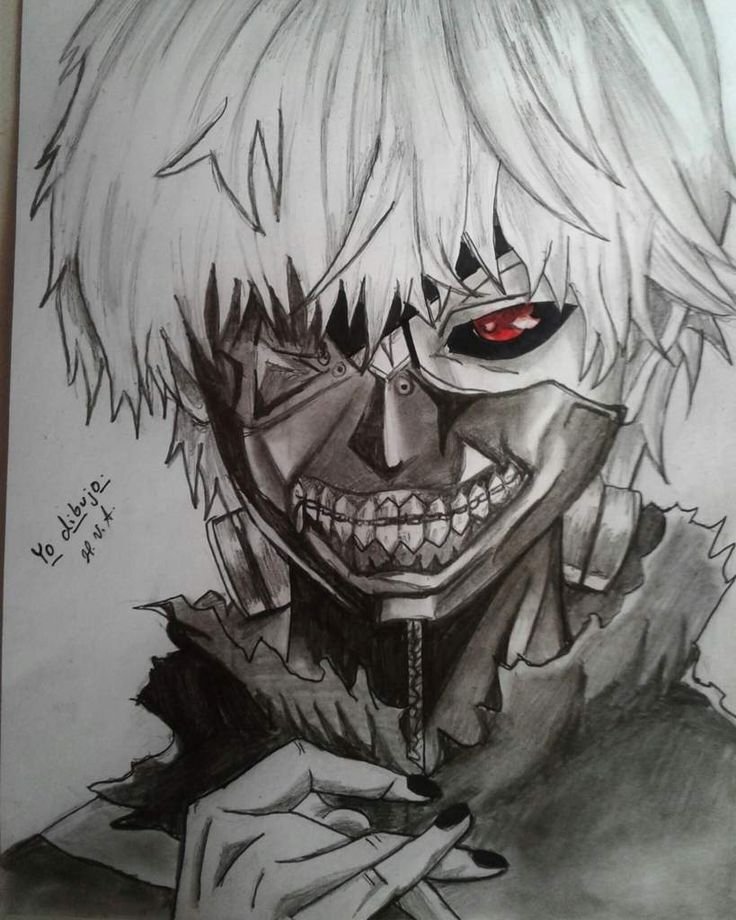![Токийский гуль Канеки Кен рисунок карандашом]()
