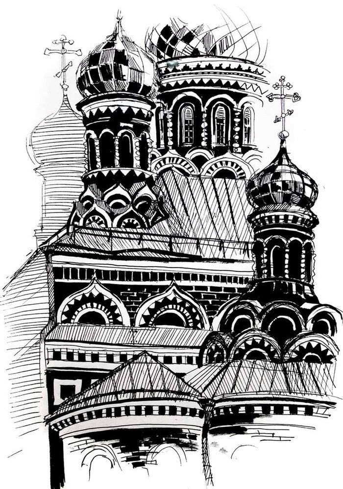 Церковь архитектура черной ручкой