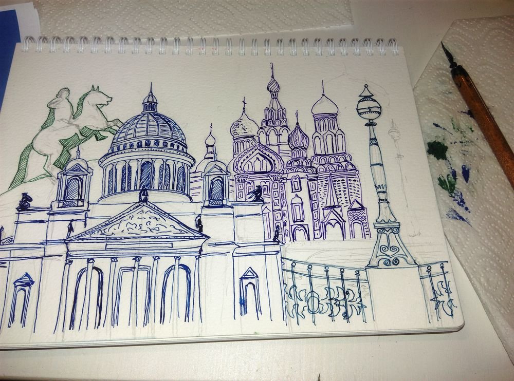 ![Рисование ручкой храмы]()