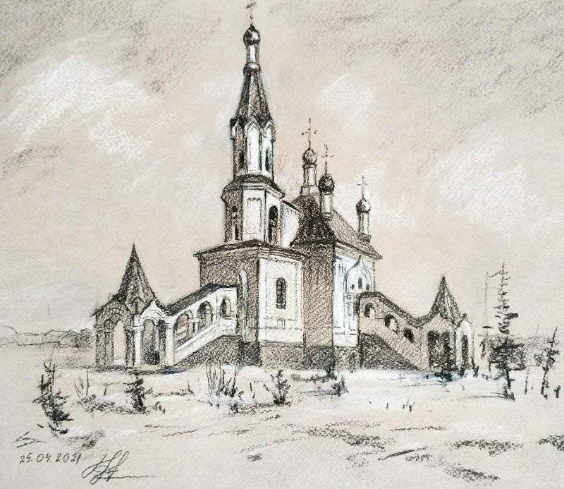 ![Храм Никольский набросок]()