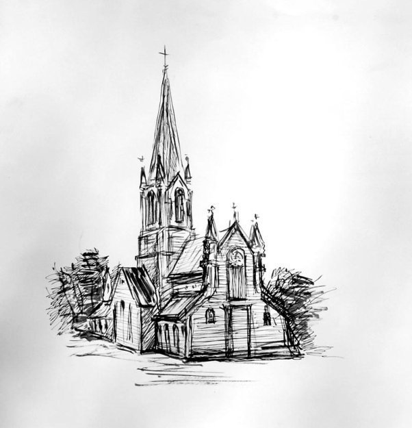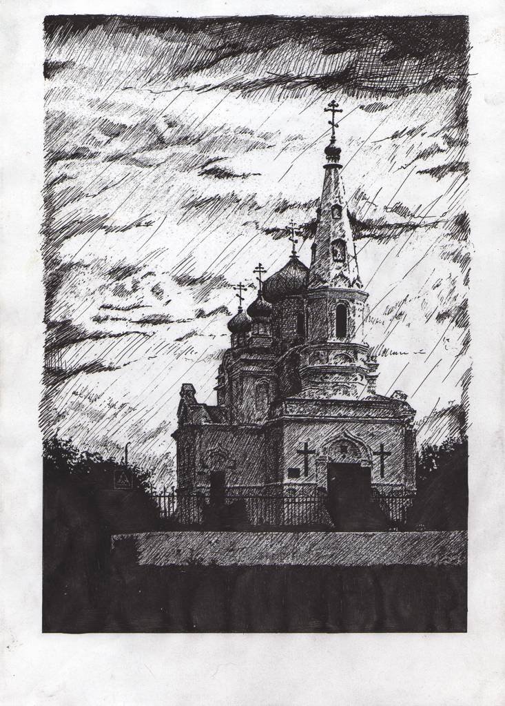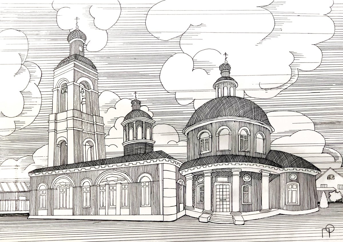 ![Церковь нарисованная черной ручкой]()