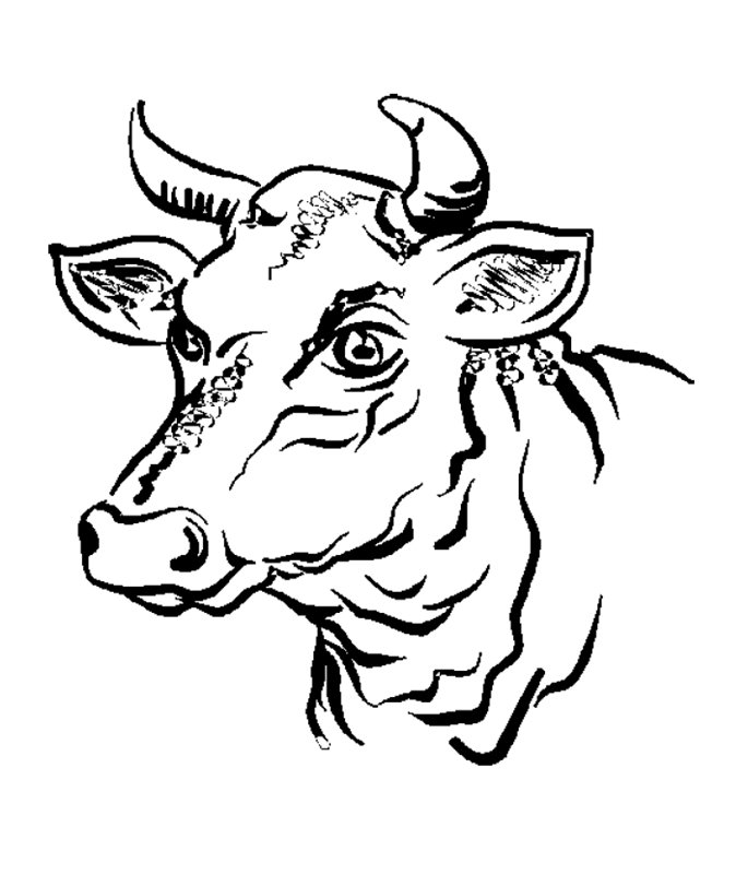 ![Голова быка раскраска]()