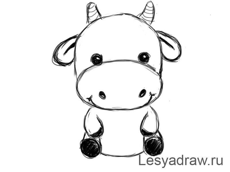 Бык срисовать легко милый