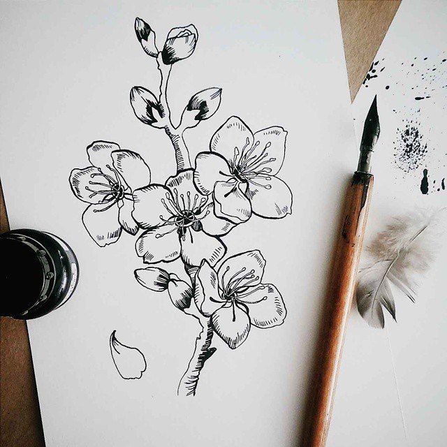 Цветы тушью и пером