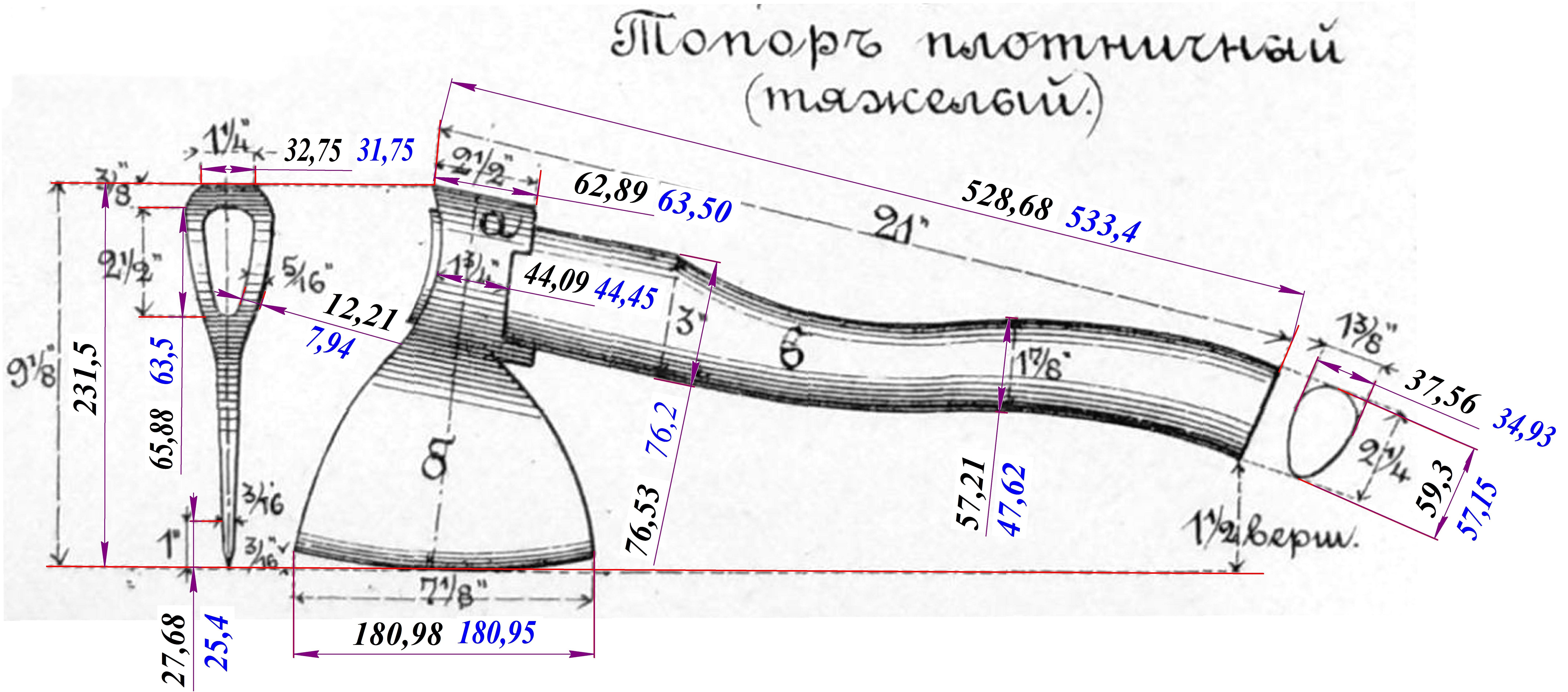 ![Чертеж таежного топора Григория Соколова]()