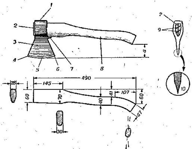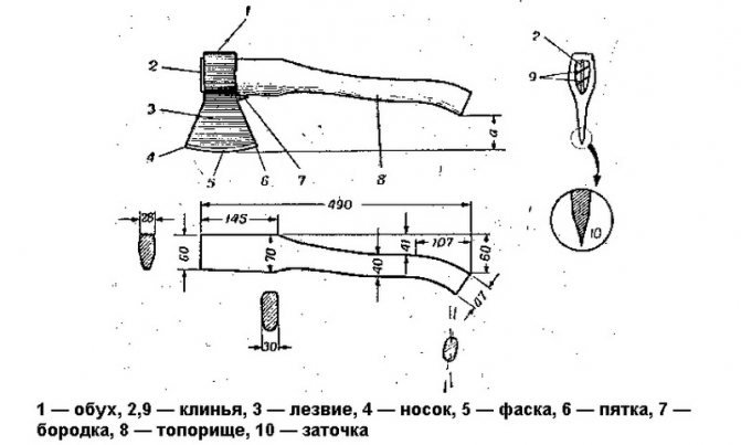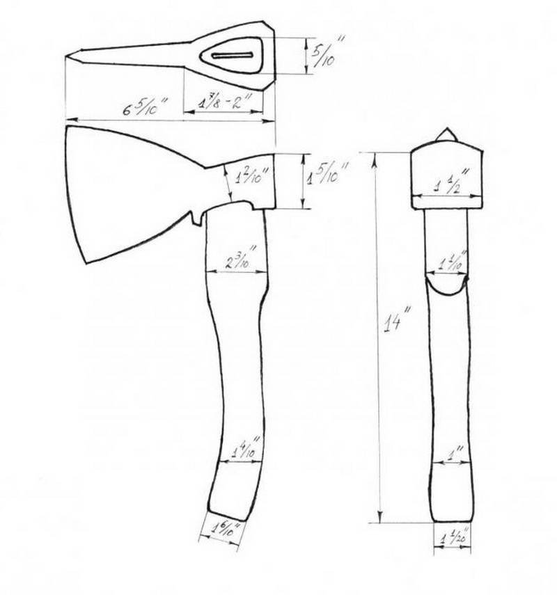 ![Форма топорища для маленького топора чертеж]()