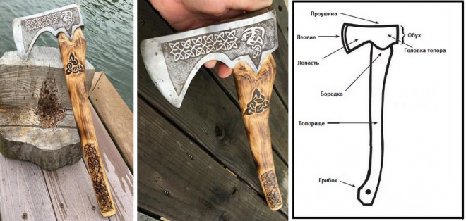 ![Рисунок на топорище]()