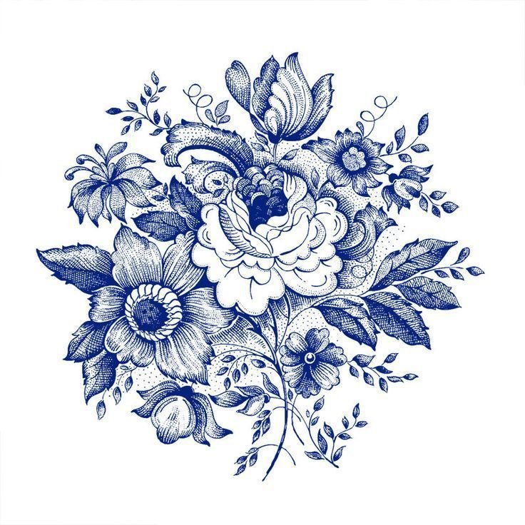 Синие цветы для срисовки
