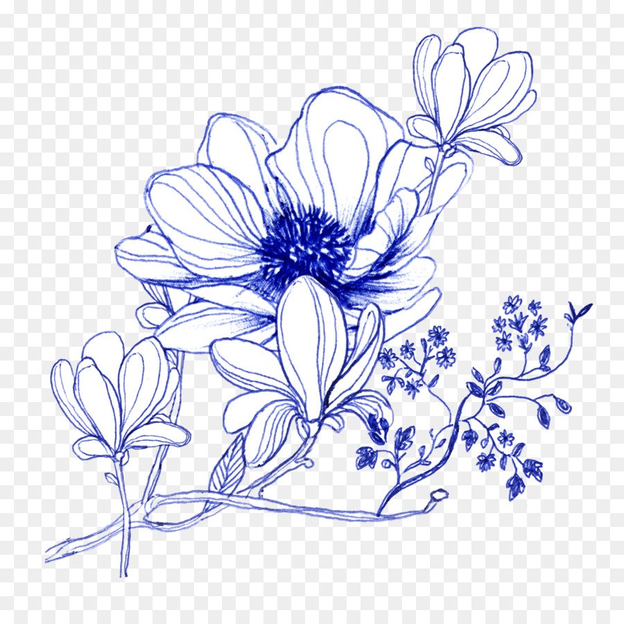 ![Крупные синие цветы эскиз]()