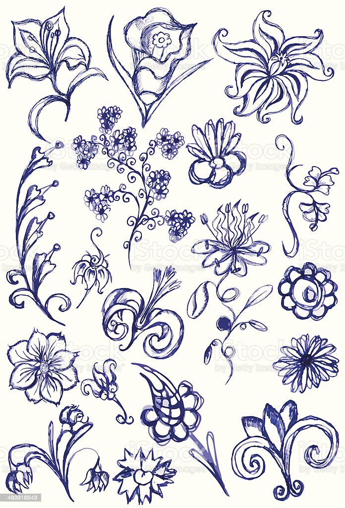 Цветы синей ручкой