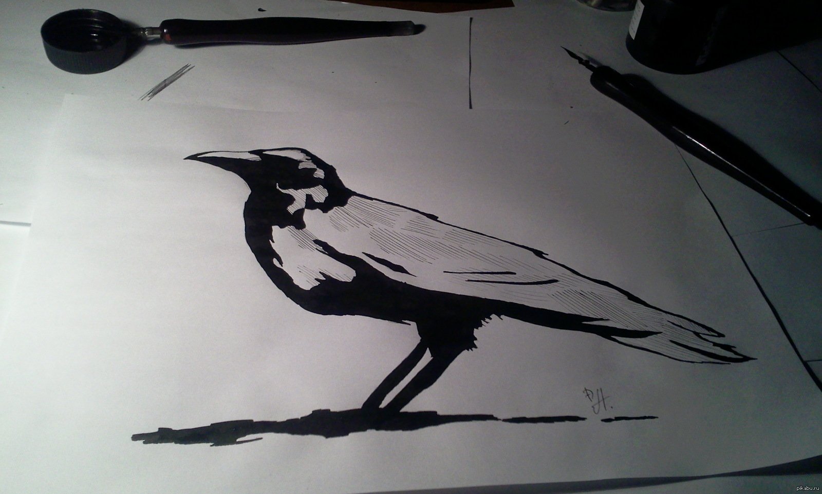 Ворон черной ручкой