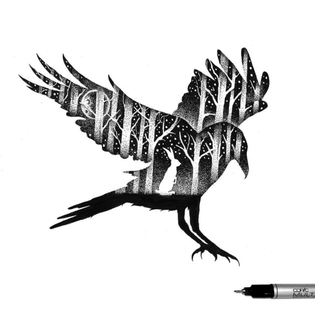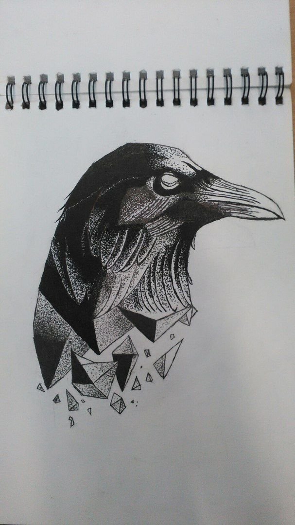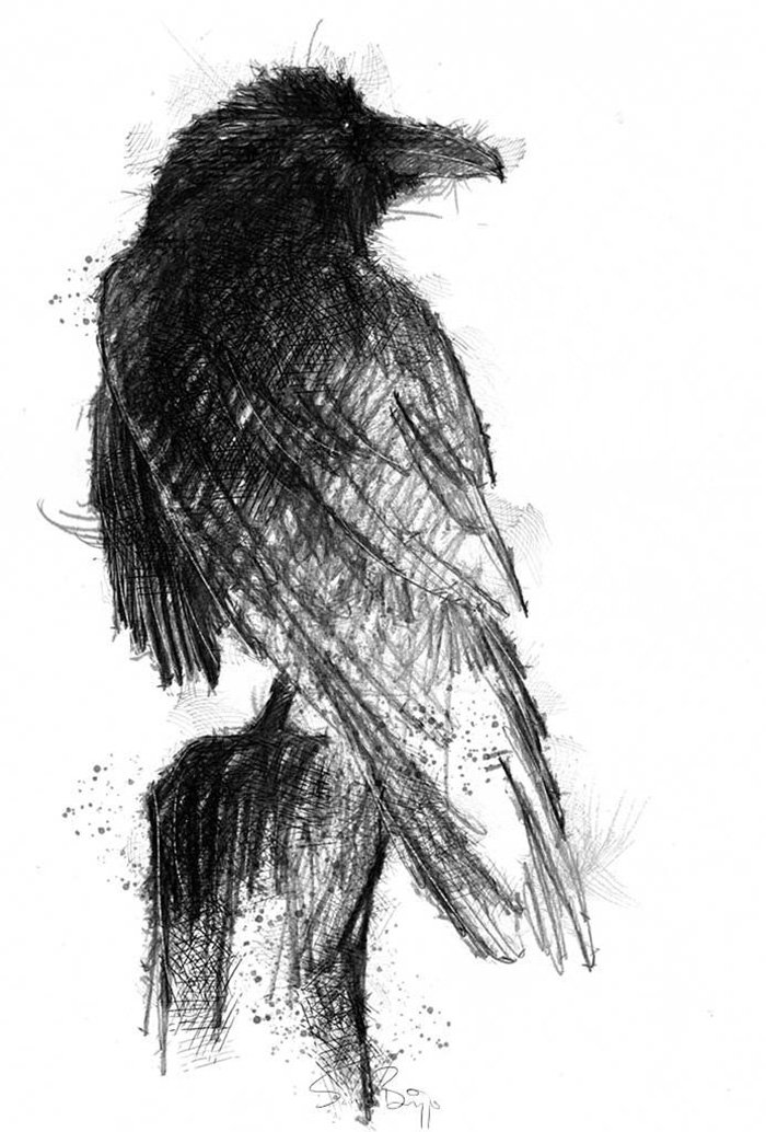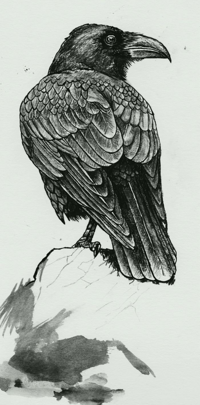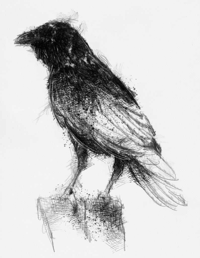 Ворон рисунок черной ручкой