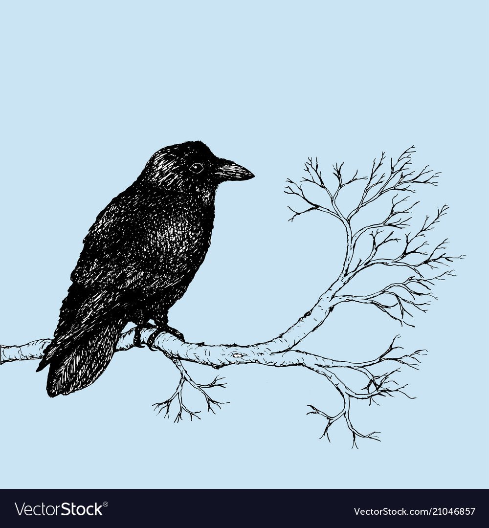 Ворон на ветке тату эскиз