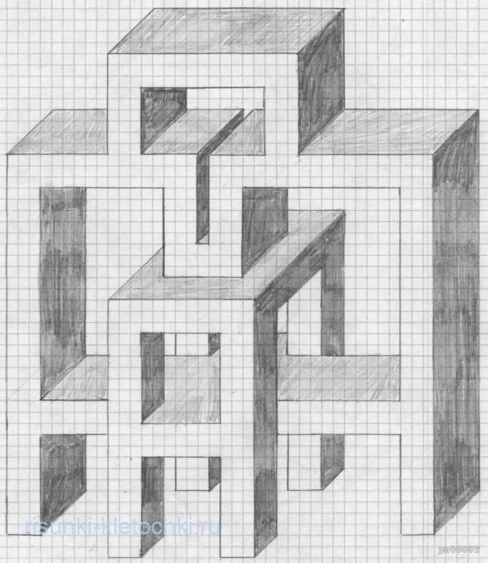 Объёмные фигуры по клеточкам в тетради