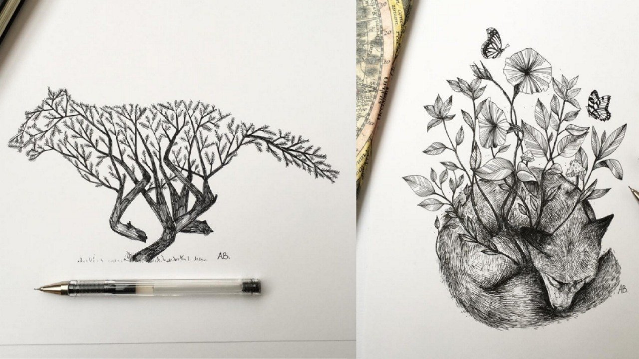 ![Рисунки чёрной гелевой ручкой]()