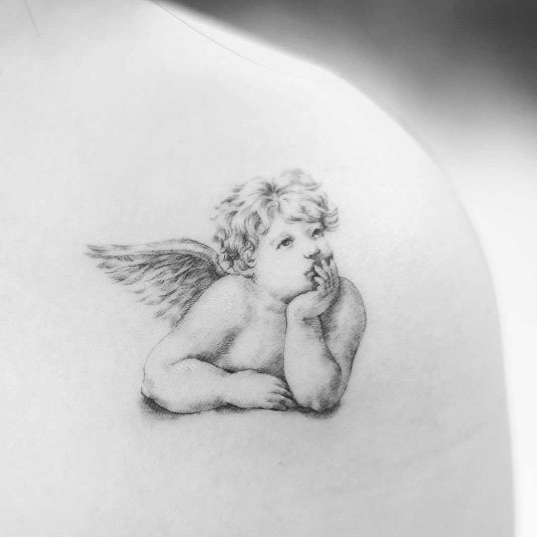 ![Ангелочек тату эскиз]()
