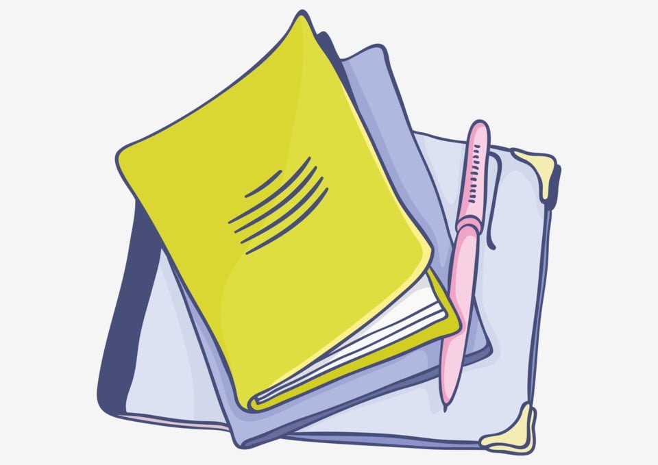 ![Блокнот и ручка мультяшная]()