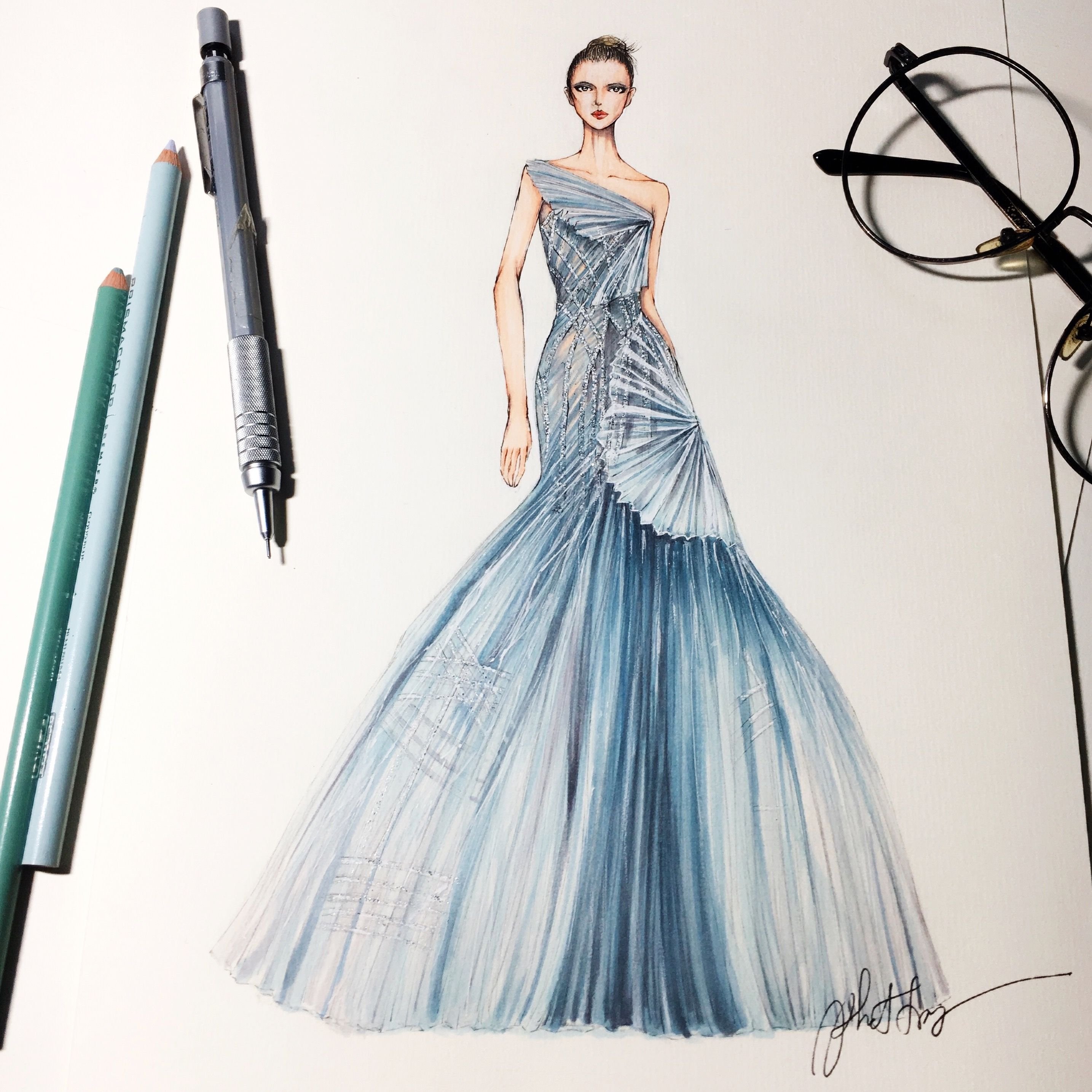 ![Платье эскиз цветной]()