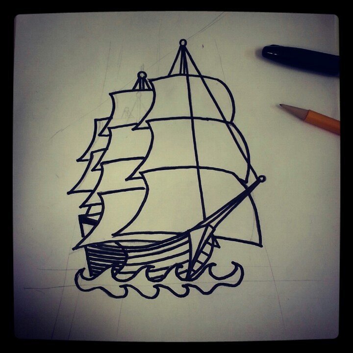 ![Кораблик маленький для срисовки ручкой]()