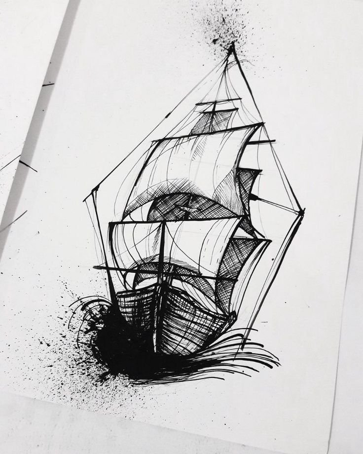 ![Корабль рисунок ручкой]()