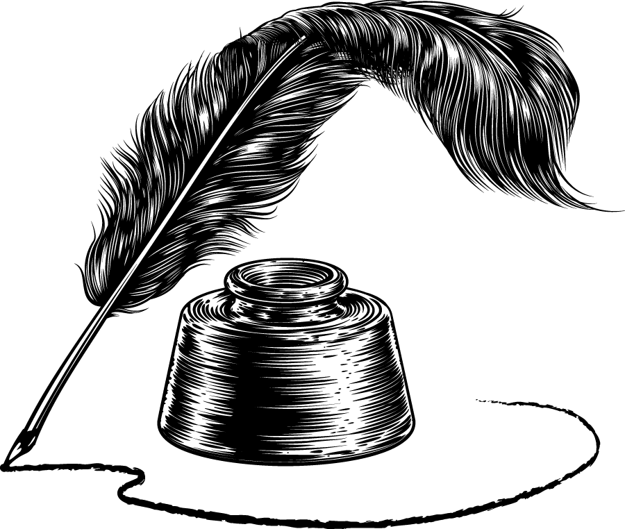 ![Белое перо и чернильница]()