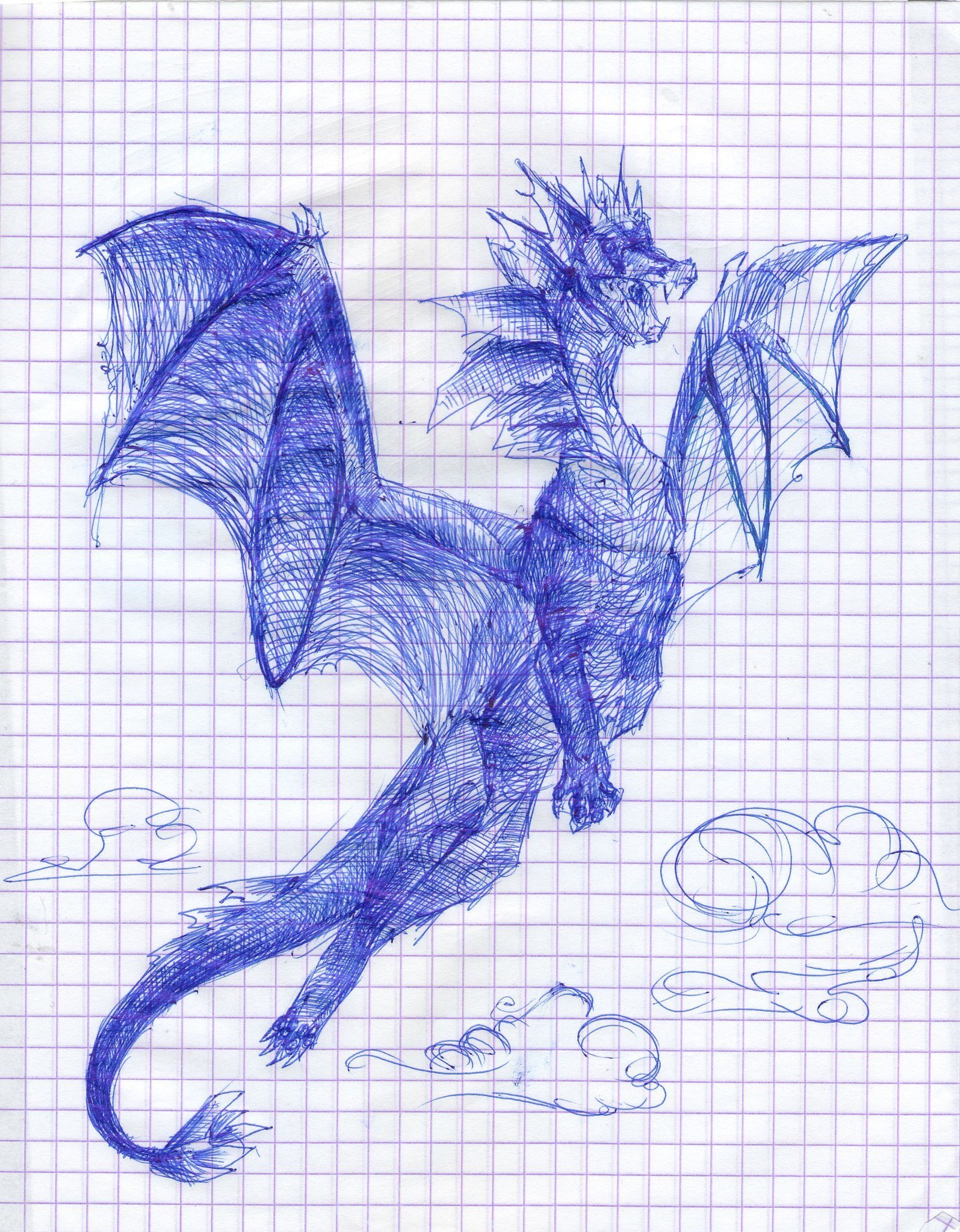 ![Дракон ручкой в тетради]()