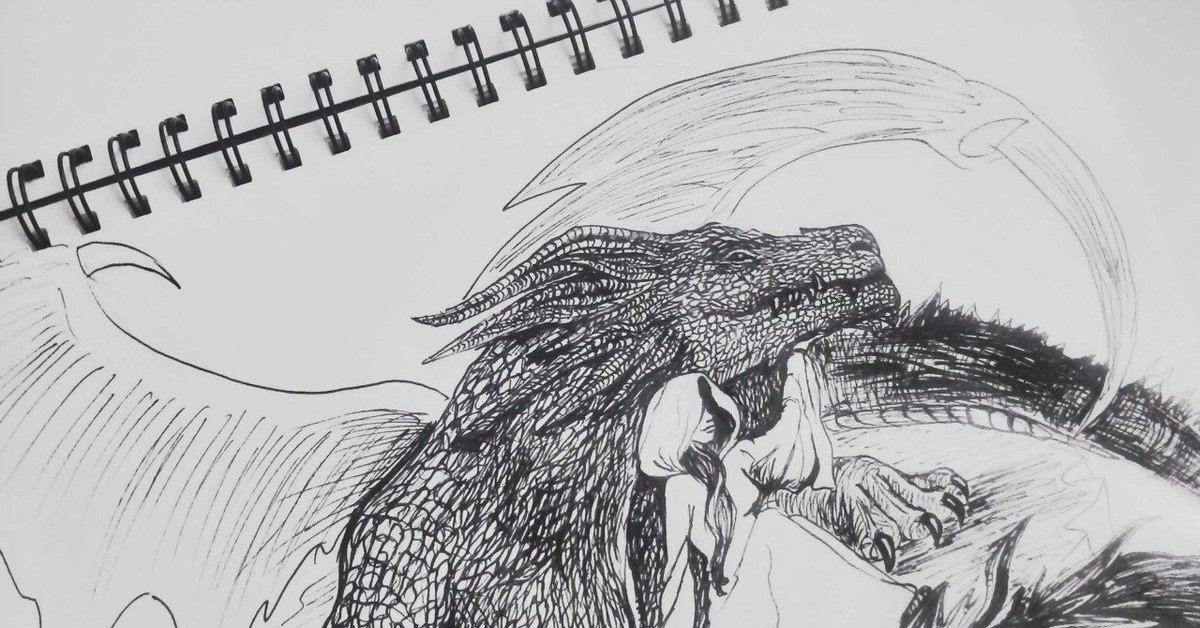 ![Дракон рисунок черной ручкой]()