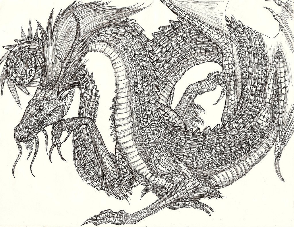 Дракон рисунок черной ручкой