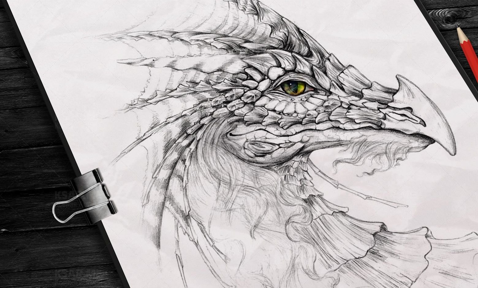 ![Голова дракона карандашом]()