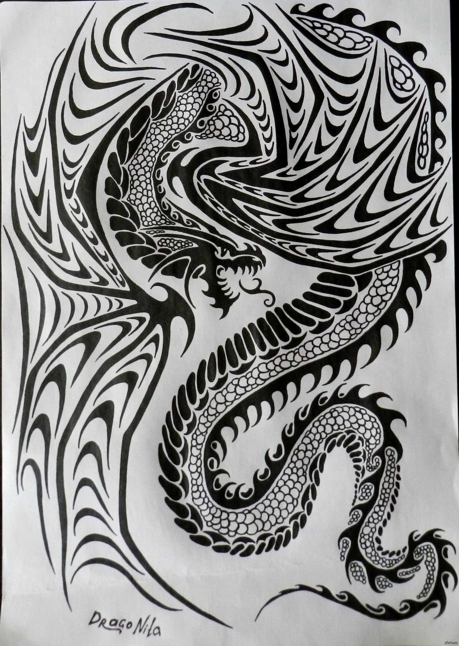 ![Дракон черной ручкой]()