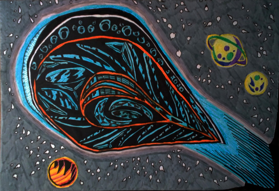 ![Космос черной ручкой]()
