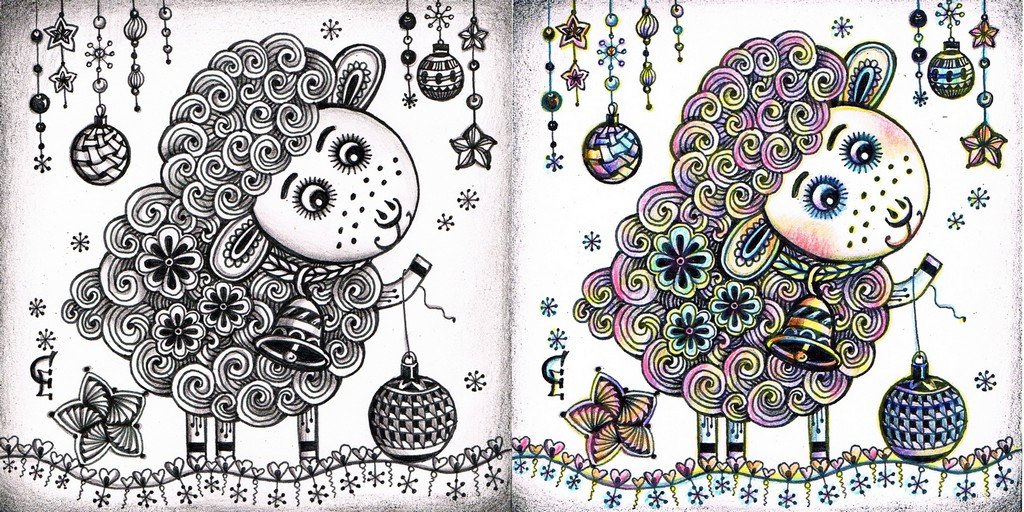 ![Новогодние открытки в стиле Зентангл]()