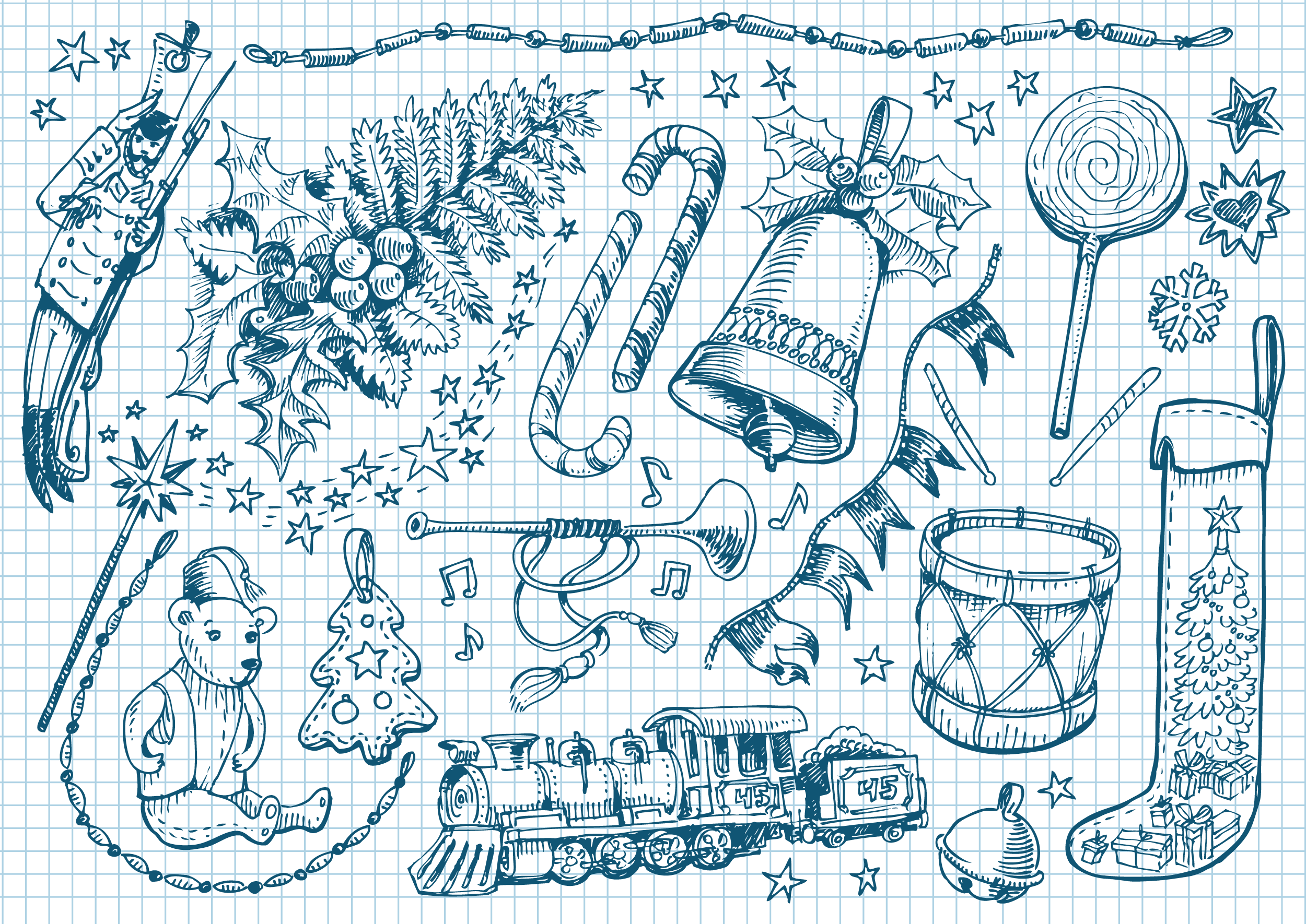 Рисунки на новый год в скетчбуке