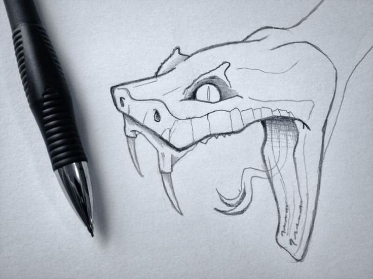 ![Змея с открытой пастью эскиз]()