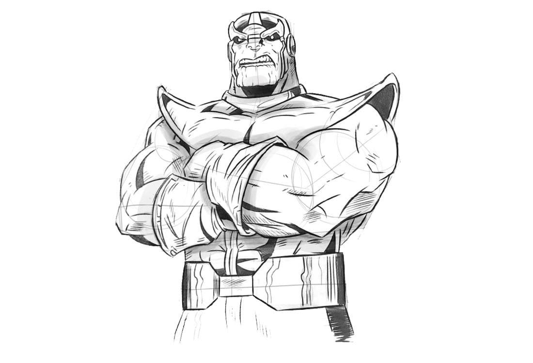 Танос - это могущественный и жестокий суперзлодей из вселенной Marvel Comics. В этом рисунке, выполненном ручкой, передается его невероятная сила и харизма. Детали и линии создают потрясающую динамику и выразительность, позволяя зрителю вглядеться в глаза безжалостного Таноса. Каждая тонкая черта передает его характерные черты лица и атрибуты, такие как фиолетовый цвет кожи и перчатка бесконечности, символизирующая его власть над вселенной. Этот рисунок ручкой является не только проявлением художественного мастерства, но и отличным способом передать эпический образ Таноса.