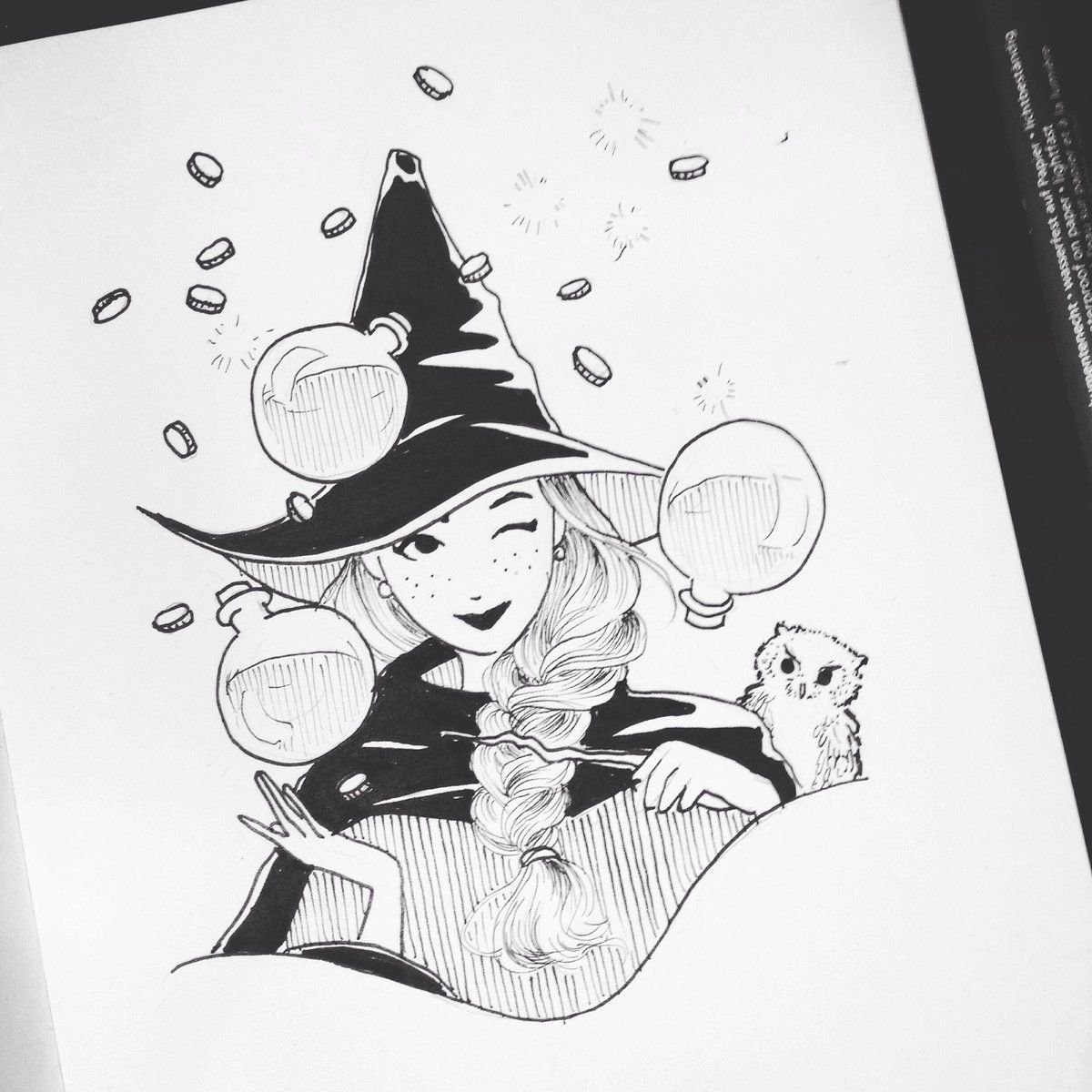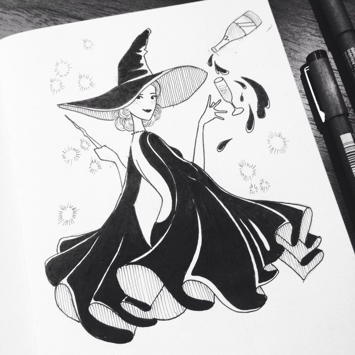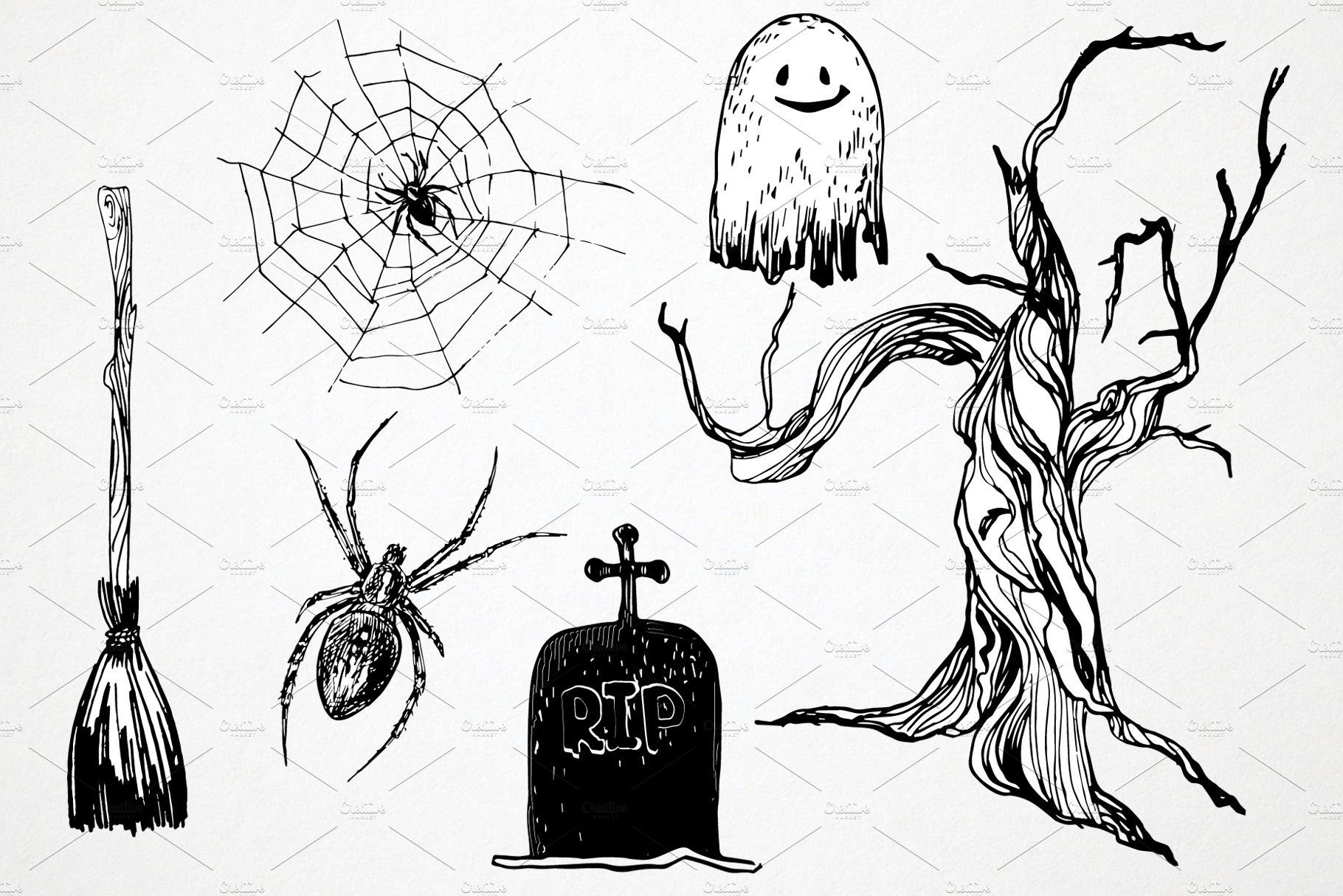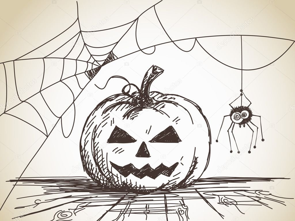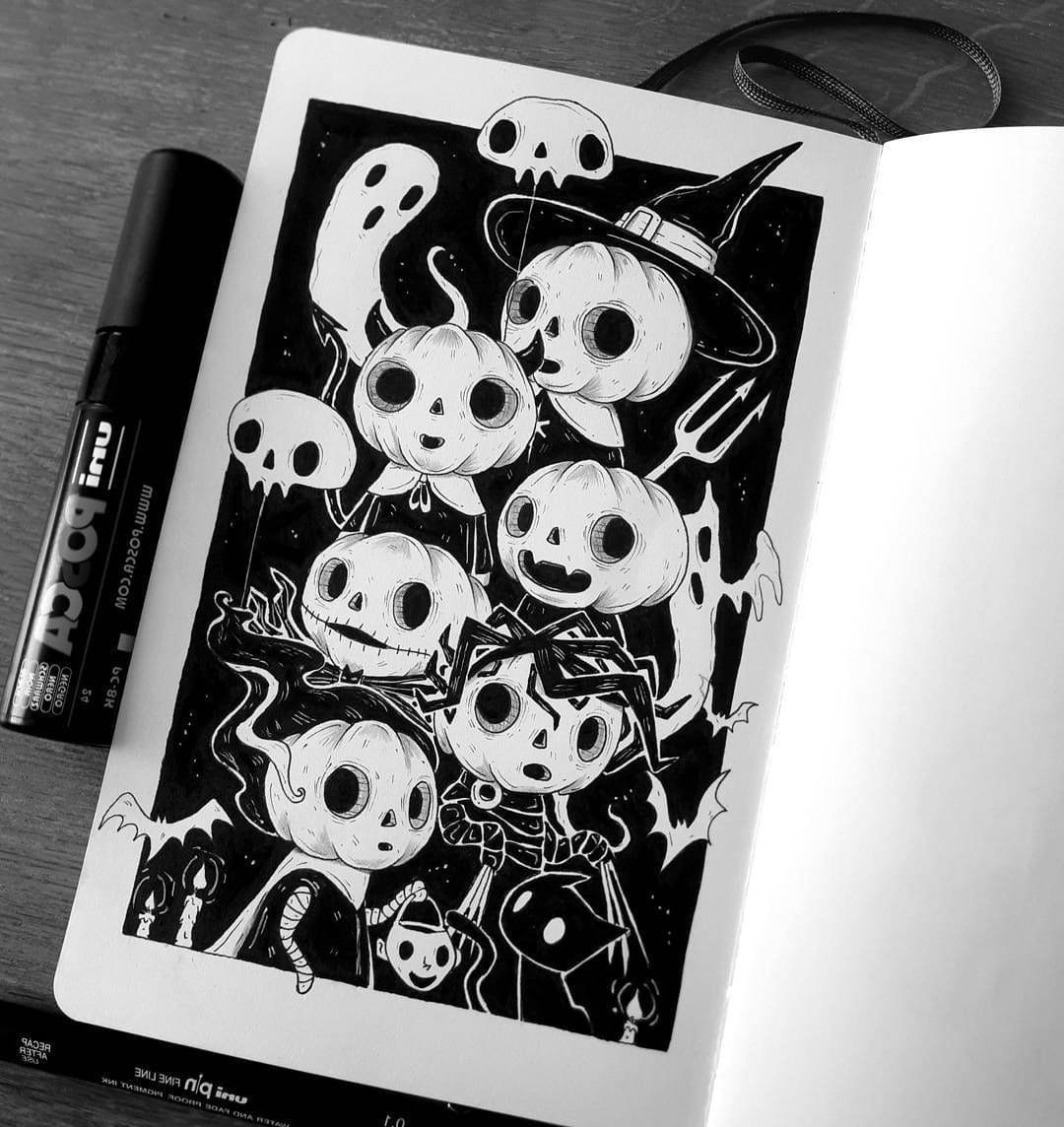 ![Лёгкие рисунки на Хэллоуин в скетчбук]()