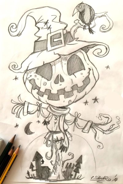 Лёгкие рисунки на Хэллоуин в скетчбук