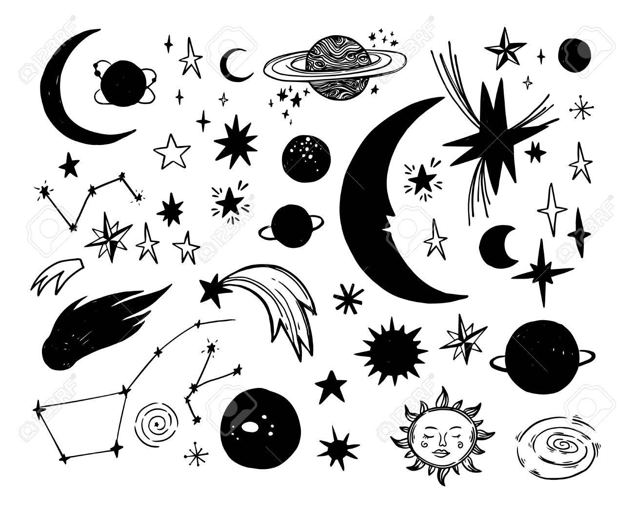 ![Рисунок кометы карандашом для срисовки]()