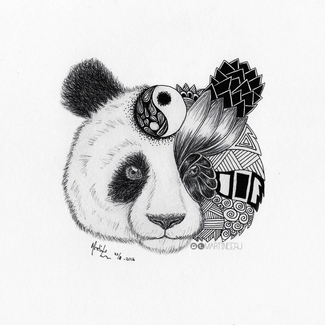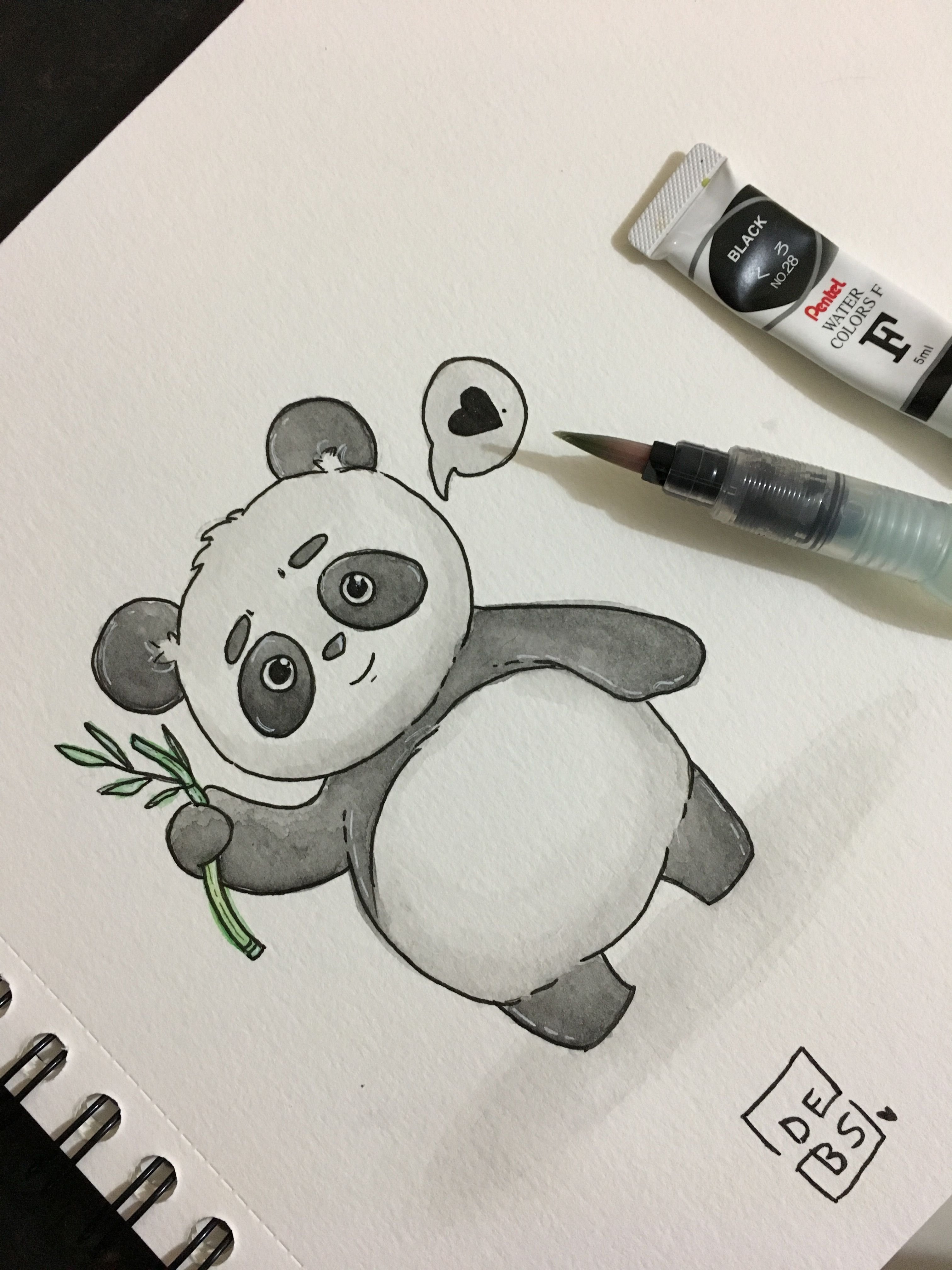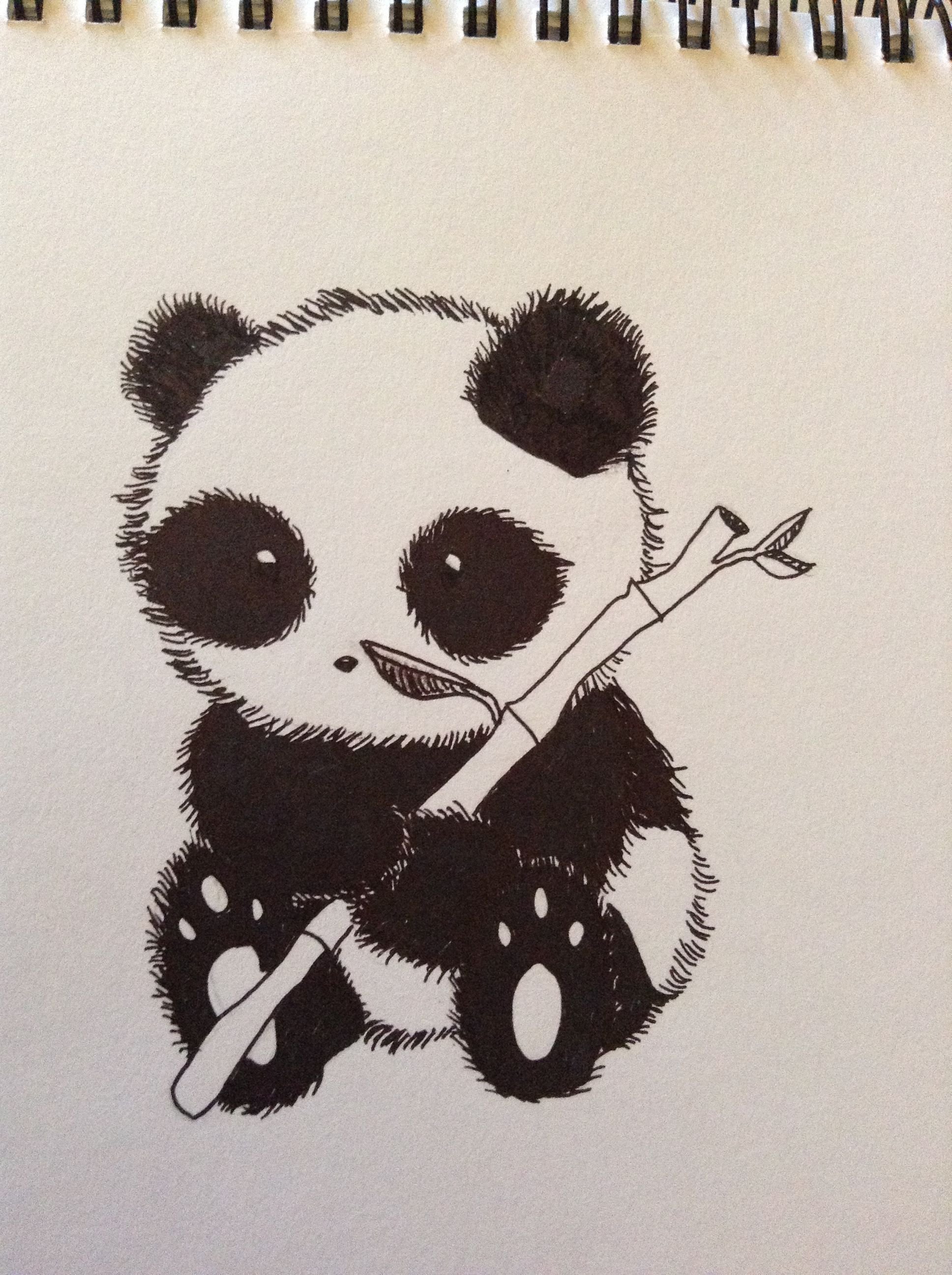 Панда черной ручкой