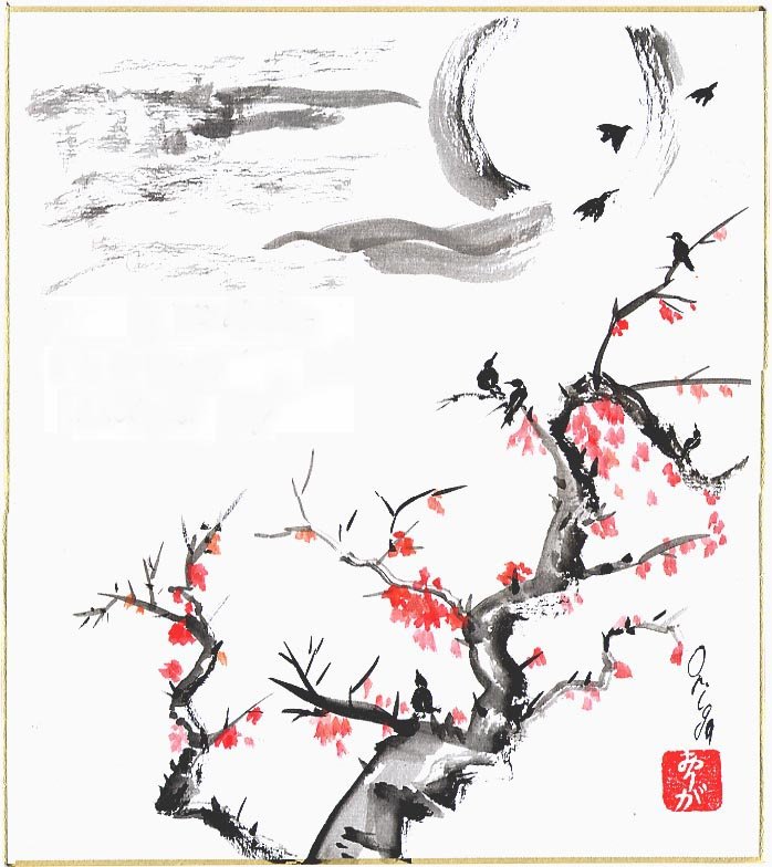 ![Японское дерево акварель]()