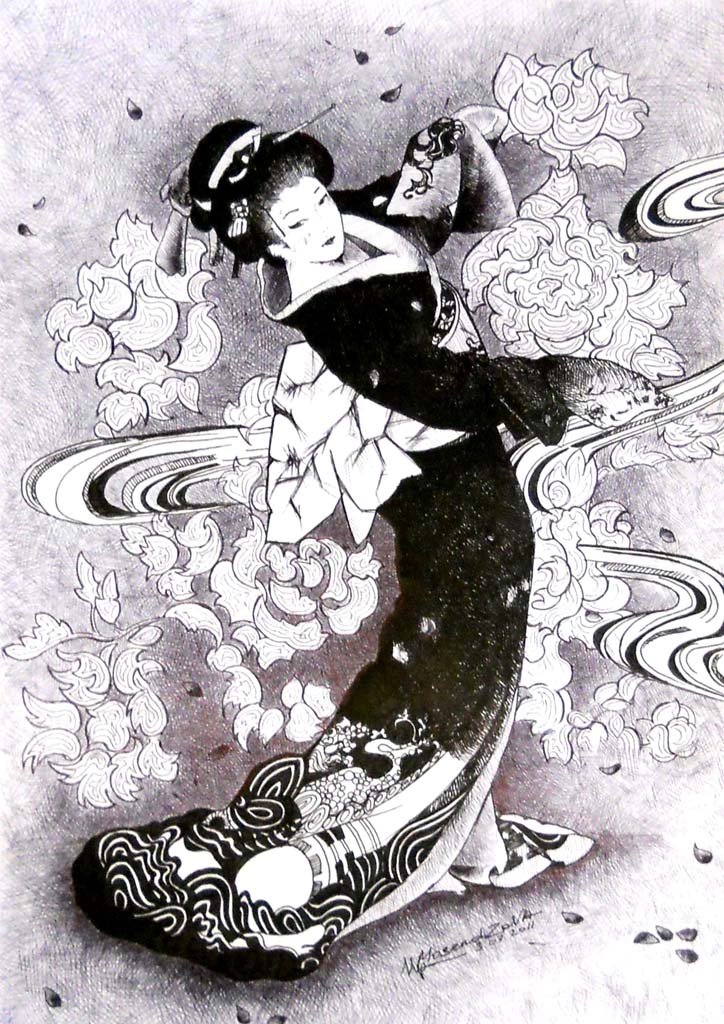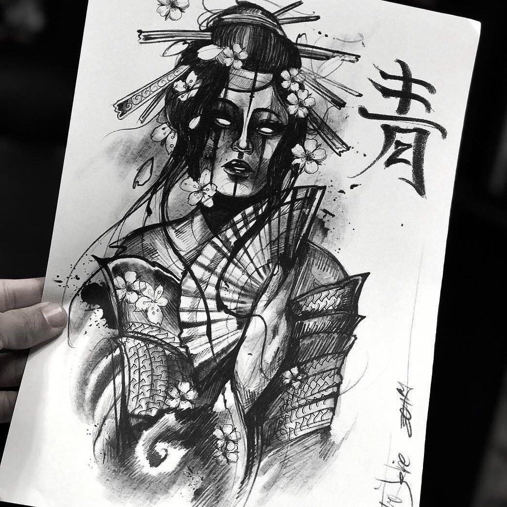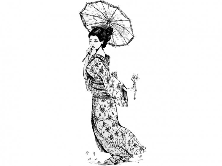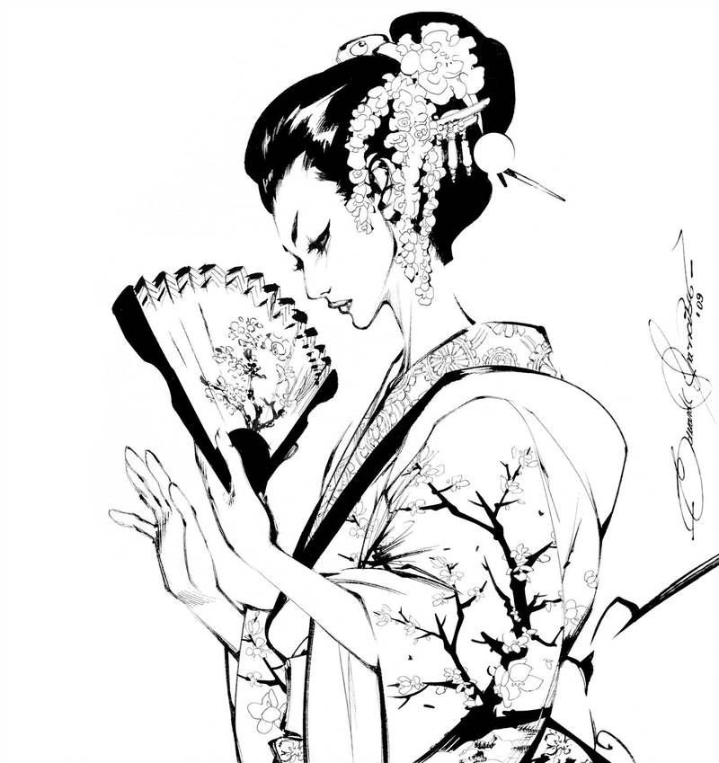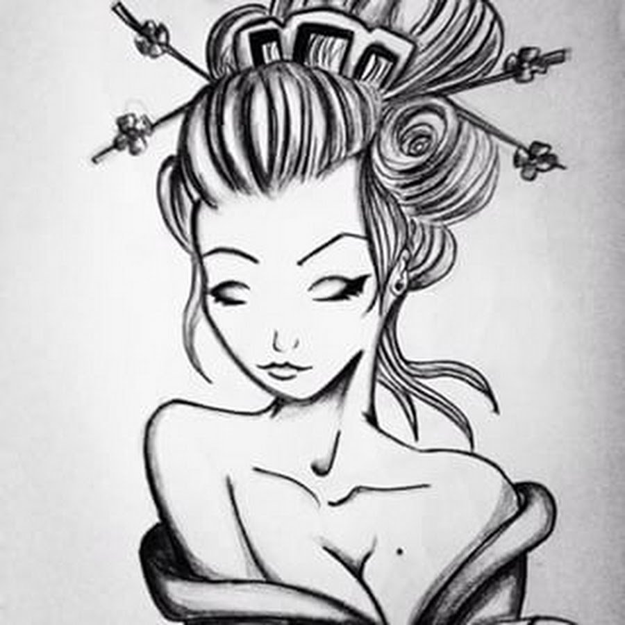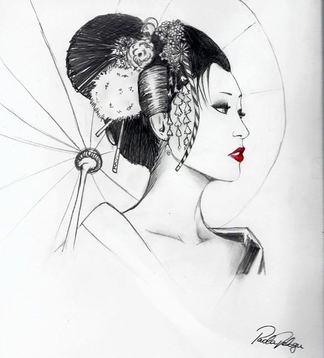 ![Гейша рисунок карандашом]()